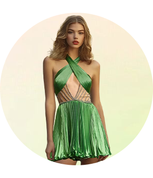 Halter Neckline Backless A Line Pleated Metallic Maxi Prom Dresses